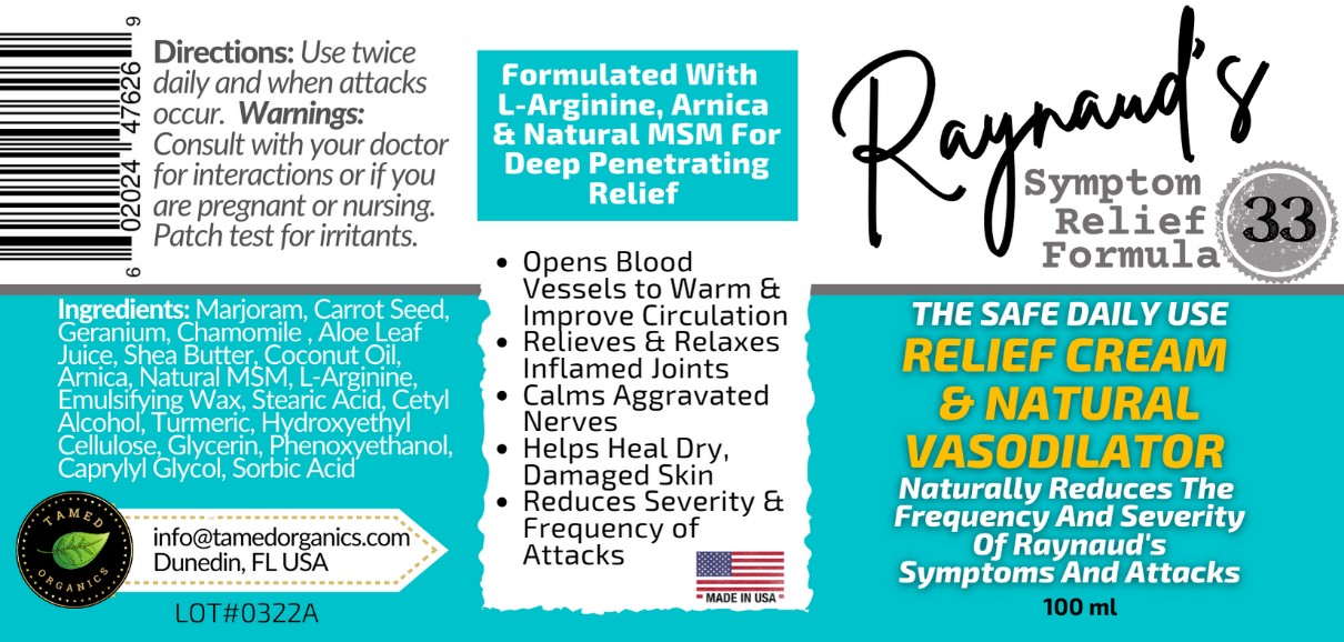 Raynaud’s Symptom Relief Cream by Tamed Organics is an all-natural formulation that works to open blood vessels and help provide warmth, ease numbness and bring color back to the hands and feet.